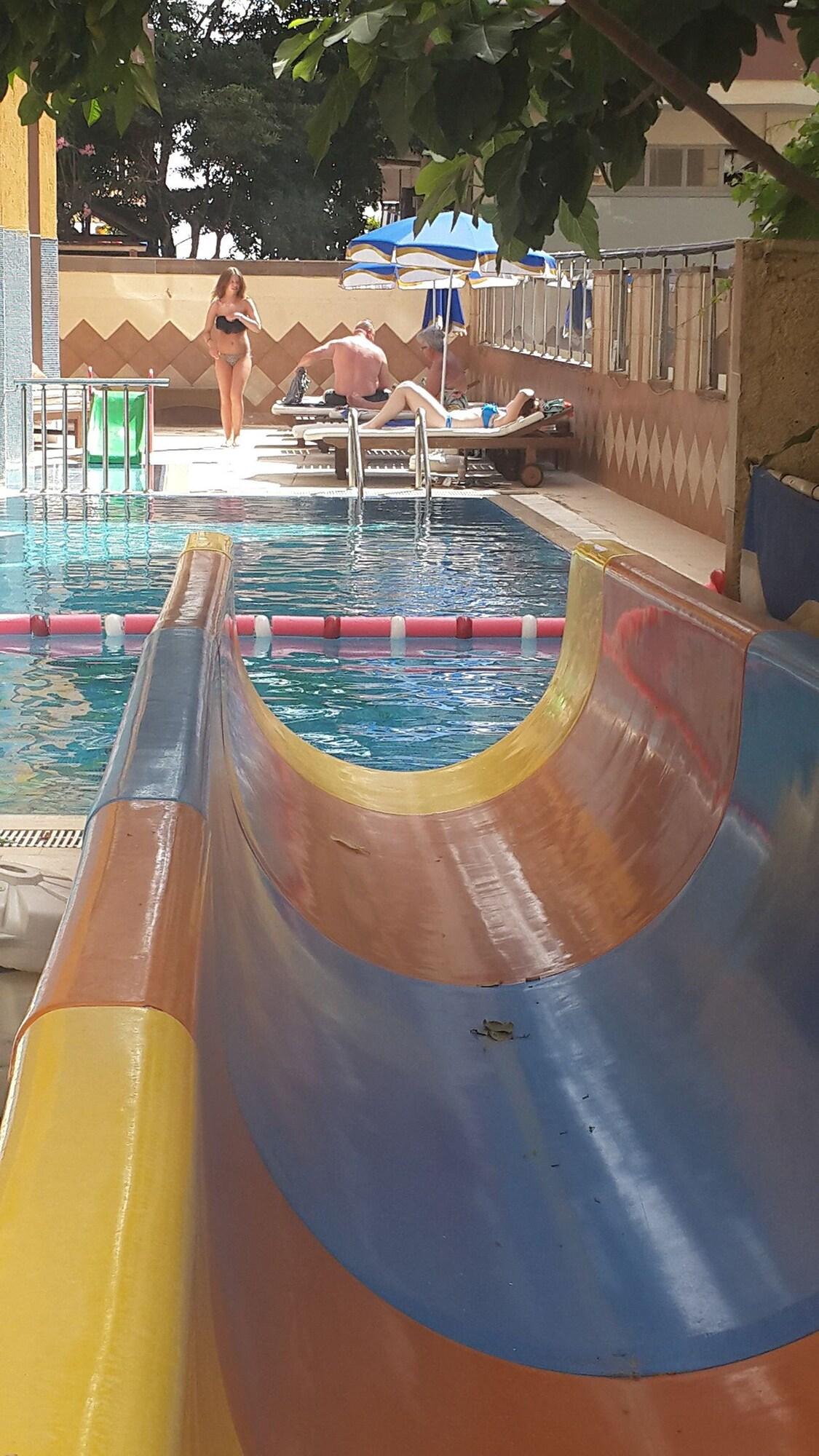 Остановившись в отеле Kleopatra İkiz в Аланье, вы окажетесь рядом с пляжем, всего в нескольких шагах от пляжа Клеопатры и в 14 минутах ходьбы от аквапарка Alanya Aquapark. Этот отель расположен в 1, 6 км от пещер Дамлаташ и в 3, 3 км от гавани Аланьи. Проведите день на частном пляже или окунитесь в один из 2 открытых бассейнов. К услугам гостей беспроводной доступ в интернет (за дополнительную плату) и помощь в организации экскурсий. Среди прочих удобств круглосуточная стойка регистрации и кофе/чай в местах общего пользования. Трансфер от/до аэропорта предоставляется за дополнительную плату. В этом отеле предлагается проживание по системе «все включено». Стоимость питания и напитков в ресторанах отеля включена в стоимость проживания по системе «все включено». За питание в некоторых ресторанах, специальные ужины и блюда, некоторые напитки и другие услуги может взиматься дополнительная плата. Утолите голод за обедом или ужином в ресторане отеля или воспользуйтесь услугой обслуживания номеров (в определенные часы). Отдохните с любимым напитком в баре/лаунже или баре у бассейна.