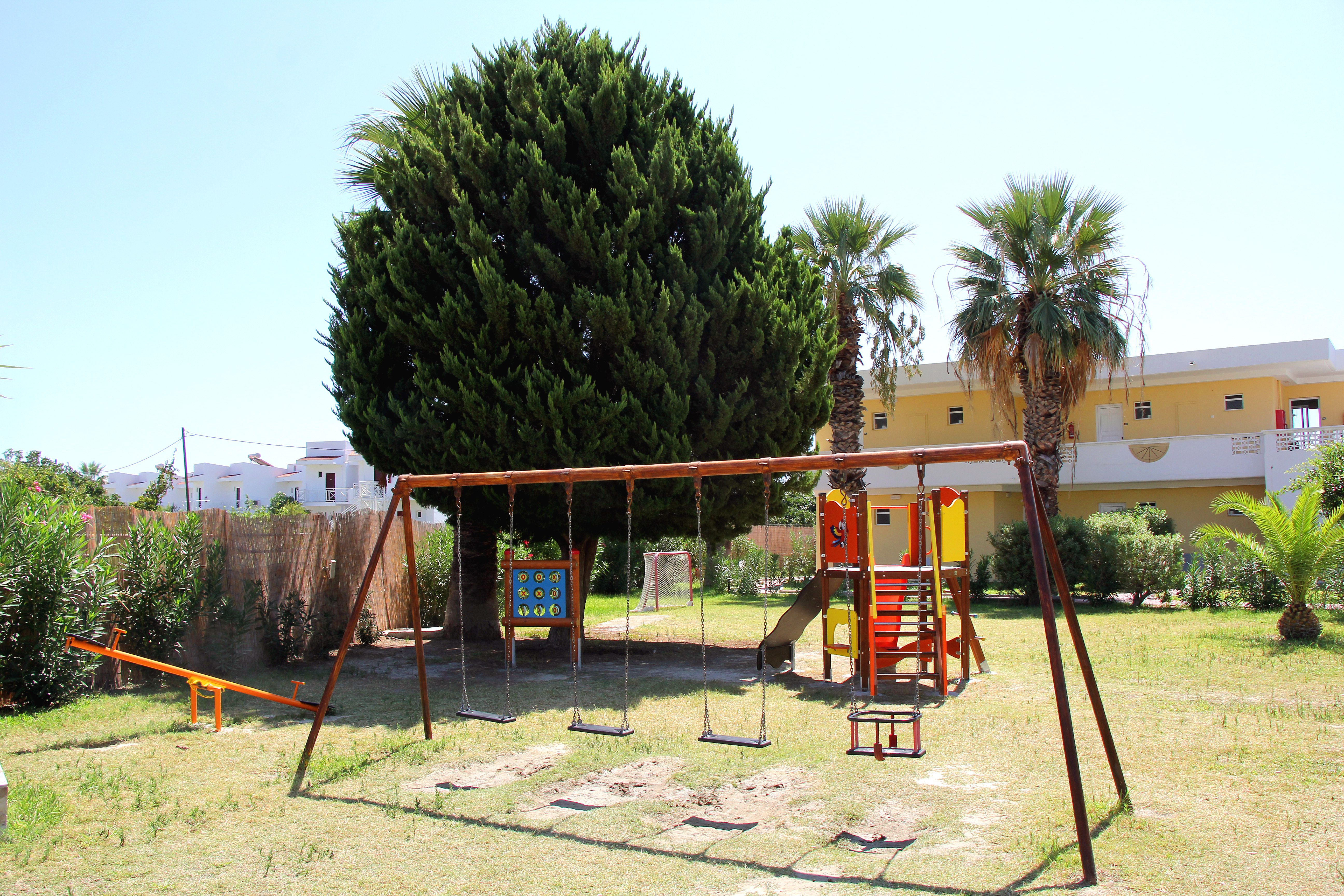 This hotel is located about 200 m from Lardos beach and the inviting blue of the Aegean Sea, and approximately 1. 5 km from Lardos village. Guests will reach Rhodes Town and its airport in about 50 km. The hotel comprises a total of 105 rooms. It combines tranquillity and relaxation but also offers many daytime activities and evening entertainment to suit guests of all ages. Facilities on offer include a lobby area with safes and lift access. Also available are a bar, a restaurant, and a TV lounge. Younger guests may let off steam in the playground, and there is parking for those arriving by car.